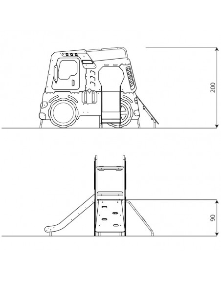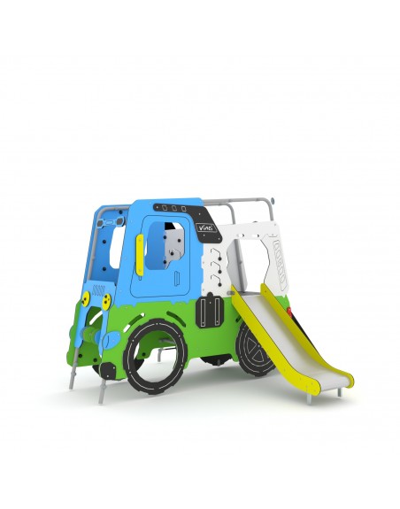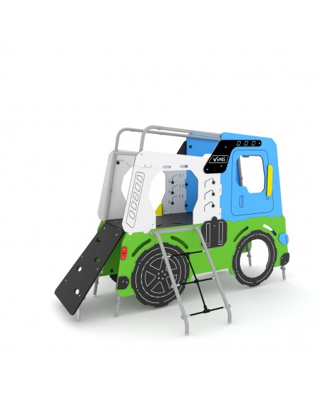 Kompleksas imituoja sunkiasvorį automobilį. Į komplektaciją įeina kopėtėlės iš lynų, čiuožykla, nuožulni plokštuma su ertmėmis užlipimui. Konstrukcija pagaminta iš karštai cinkuotos ir milteliniu būdu dažytos plieno konstrukcijos, įbetonuojama. Platformos ir laipiojimo plokštuma pagamintos iš neslidžios HPL plokštės, šoninės panelės - HDPE, čiuožykla - nerūdijančio plieno.