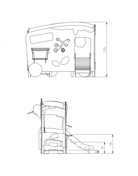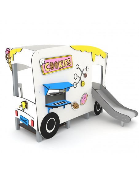 Kompleksas imituoja ledų furgonėlį. Į komplektaciją įeina žaidimų sienelės, čiuožykla. Konstrukcija pagaminta iš karštai cinkuotos ir milteliniu būdu dažytos plieno konstrukcijos, įbetonuojama. Platformos ir laipiojimo plokštuma pagamintos iš neslidžios HPL plokštės, šoninės panelės - HDPE, čiuožykla - nerūdijančio plieno.