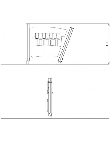 Konstrukcija pagaminta iš aukštos kokybės klijuotos ir impregnuotos 90 x 90 mm storio medienos, su polipropileno apsaugomis viršuje. Ksilofonas pagamintas iš aliuminio vamzdžių ir HDPE, smūgio elementai – iš gumos su tekstiliniu armavimu. Statoma ant metalinių kojų, įbetonuojama.