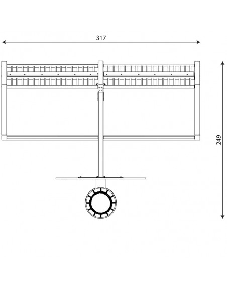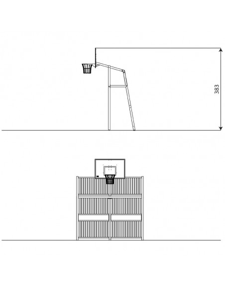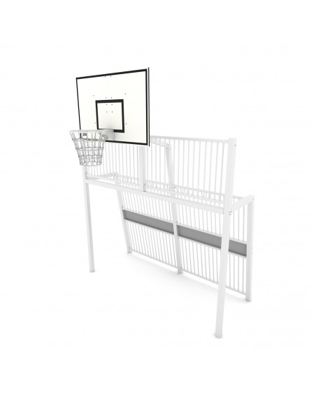 Karštai cinkuoto plieno konstrukcija iš 80 x 80 mm profilio. Šoninės plokštės, krepšinio lenta pagaminta iš HDPE plokštės. Grandinės kalibruotos nerūdijančio plieno, saugios nuo pirštų privėrimo. Įrenginys pritaikytas įvairioms sporto veikloms, tinkamas naudoti žmonėms su negalia, neturi aštrių briaunų ar pavogingų tarpų. Montuojamas ankeruojant į pagrindą 80 -100 cm gylyje.