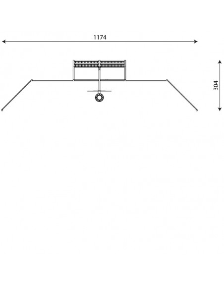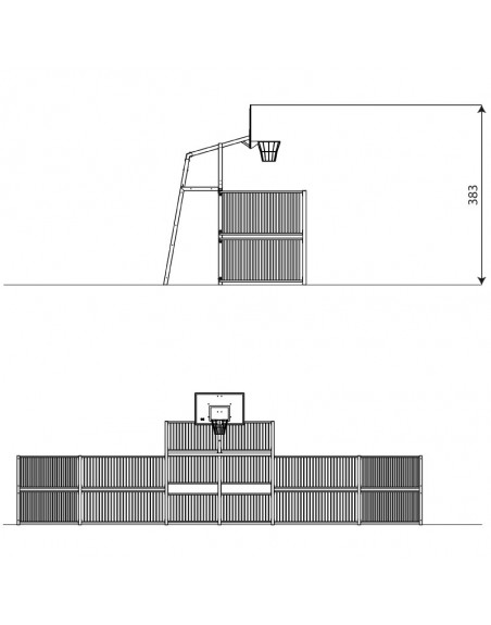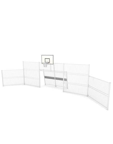 Karštai cinkuoto plieno konstrukcija iš 80 x 80 mm profilio. Šoninės plokštės, krepšinio lenta pagaminta iš HDPE plokštės. Grandinės kalibruotos nerūdijančio plieno, saugios nuo pirštų privėrimo. Įrenginys pritaikytas įvairioms sporto veikloms, tinkamas naudoti žmonėms su negalia, neturi aštrių briaunų ar pavogingų tarpų. Montuojamas ankeruojant į pagrindą 80 - 100 cm gylyje.