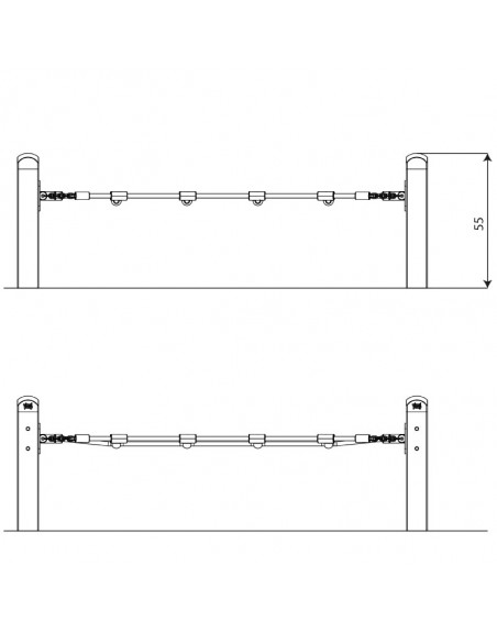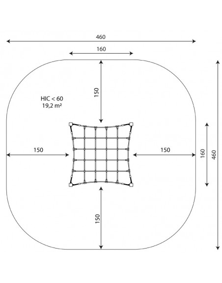 Konstrukcija pagaminta iš karštai cinkuotos ir milteliniu būdu dažytos 80 x 80 mm profilio plieno konstrukcijos. Tinklas - plieninės virvės su polipropileno pynimu. Montuojama įbetonuojant.