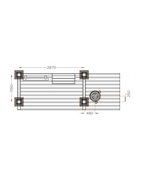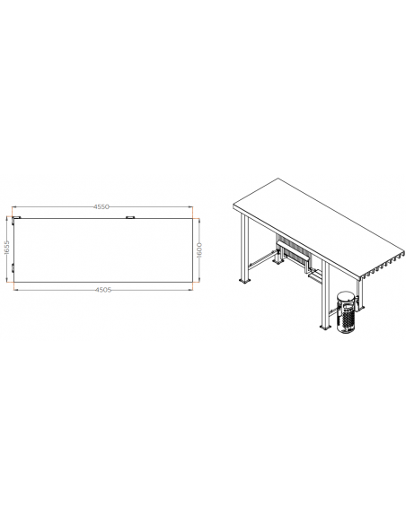 Konstrukcija pagaminta iš 120 mm kvadratinių cinkuotų ir milteliniu būdu dažytų plieno vamzdžių. Stogas ir siena - aliuminio lamelės su medienos imitacija, sienos - 8 mm storio grūdintas stiklas. Integruotas suoliukas, USB įkroviklis, saulės panelė bei šiukšliadėžė su dviem peleninėmis.