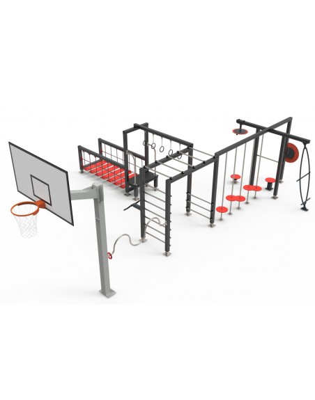 Konstrukcija aliumininė 95 x 95 mm dažyta milteliniu būdu, vamzdžiai, rankenos - 30 mm skersmens nerūdijančio plieno. Krepšinio lentos konstrukcija 150 x 150 x 3 mm cinkuoto plieno profilio, apdailos detalės - HDPE ir HPL. Tvirtinama įbetonuojant.