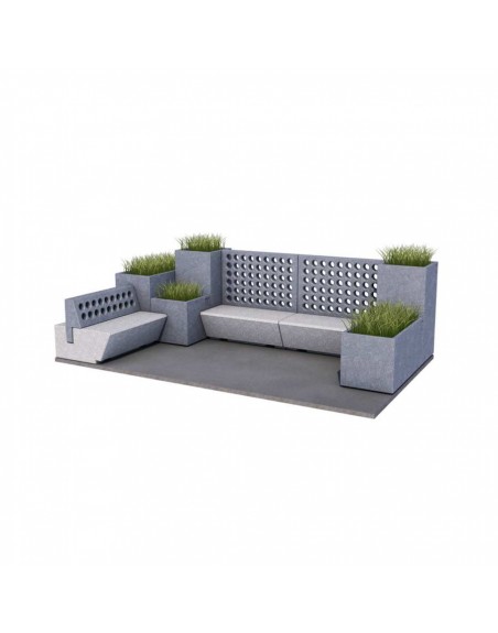 Poilsio zona susideda iš 3 betoninių suoliukų su atlošu ir 5 skirtingo dydžio gėlinių. Pagaminta ir poliruoto ir nepoliruoto betono. Papildomai galima montuoti LED apšvietimą.