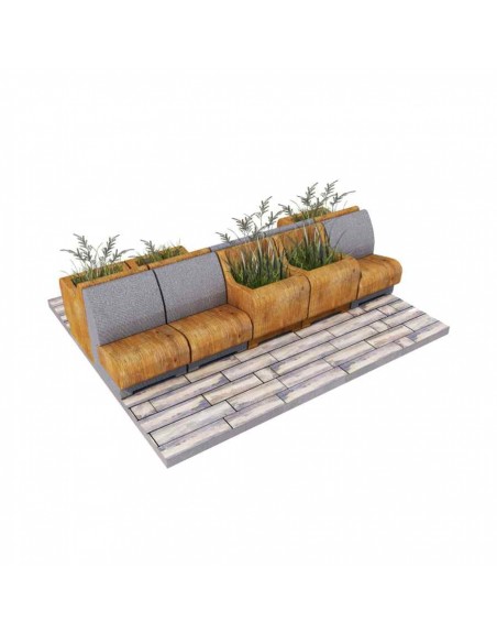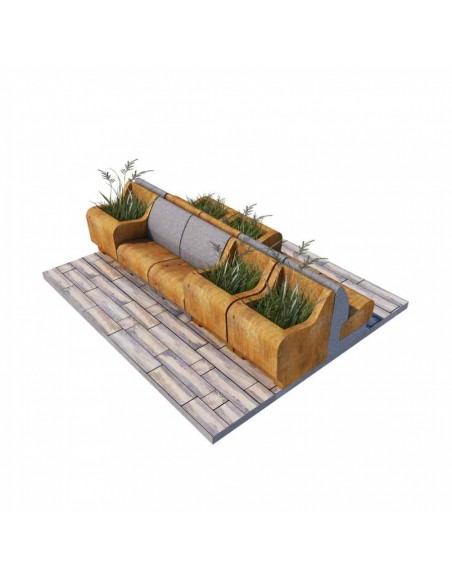 Poilsio zona susideda iš 5 betoninių suoliukų su atlošu ir 5 gėlinių. Pagaminta iš tekstūrinio betono, sėdimoji dalis - medžio tekstūros imitacija.