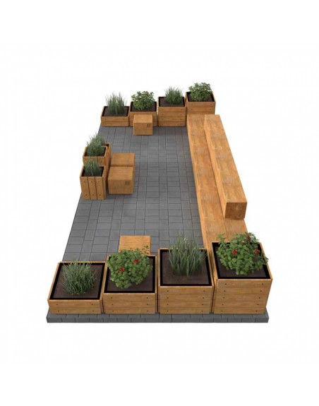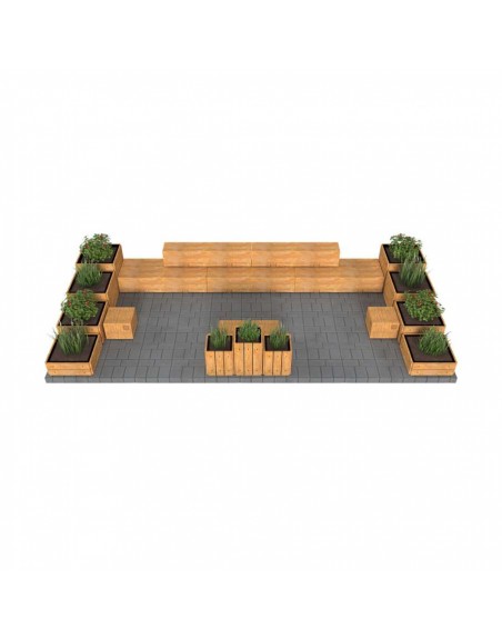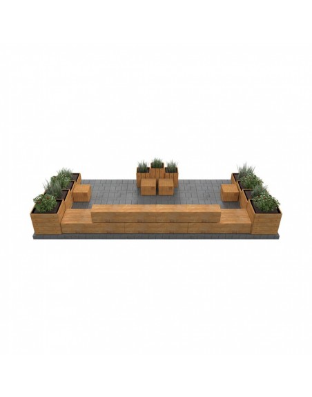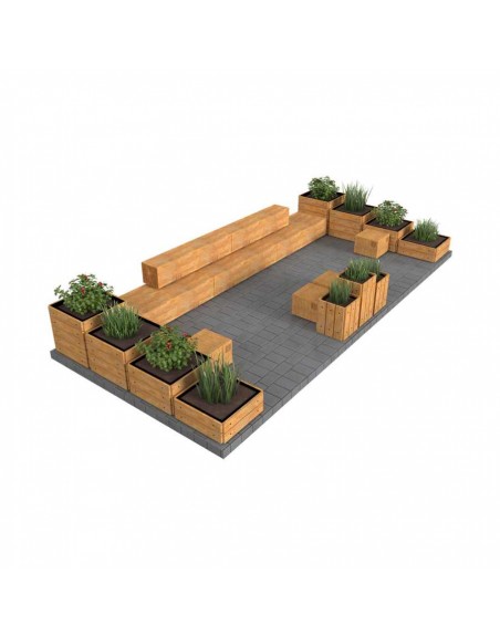 Poilsio zona susideda iš betoninių suoliukų segmentų, 4 pufų, apvalaus stalo ir 11 gėlinių. Pagaminta iš tekstūrinio betono, medžio tekstūros imitacija.